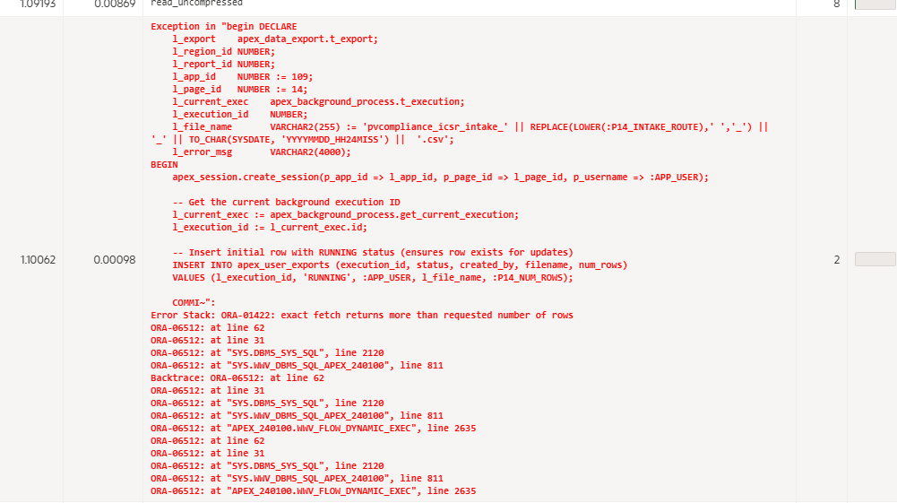 Ideally I would add a “Download Background” action, and add some configuration which can be set to write the values into an Oracle table you specify, where you specify the column to store the EXECUTION_ID, APP_USER, FILE_NAME, FILE_SIZE, MIME_TYPE, EXECUTION_STATUS, ERROR etc.