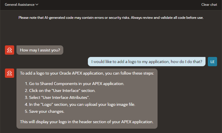 Unless I've missed it, I can't see a way to access the APEX AI Assistant without entering a code editor/SQL Workshop. It would be great to have a button available at all times to ask general questions.