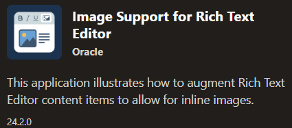 - Enable support for pasting images directly into the Rich Text Editor (RTE) in Oracle APEX, with automatic conversion of images into Base64 format or file references, and storage in a CLOB or associated BLOB item. This would allow users to copy and paste images seamlessly along with text content inside applications.