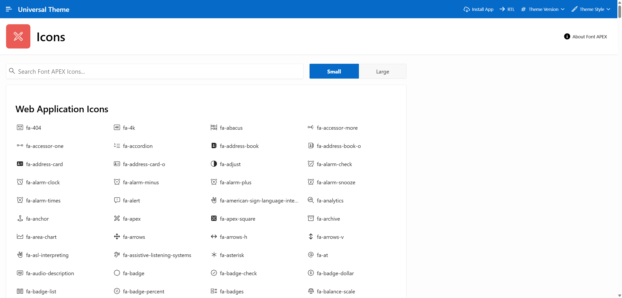 The idea is to enhance the existing Universal Theme \ Icons page user experience by: