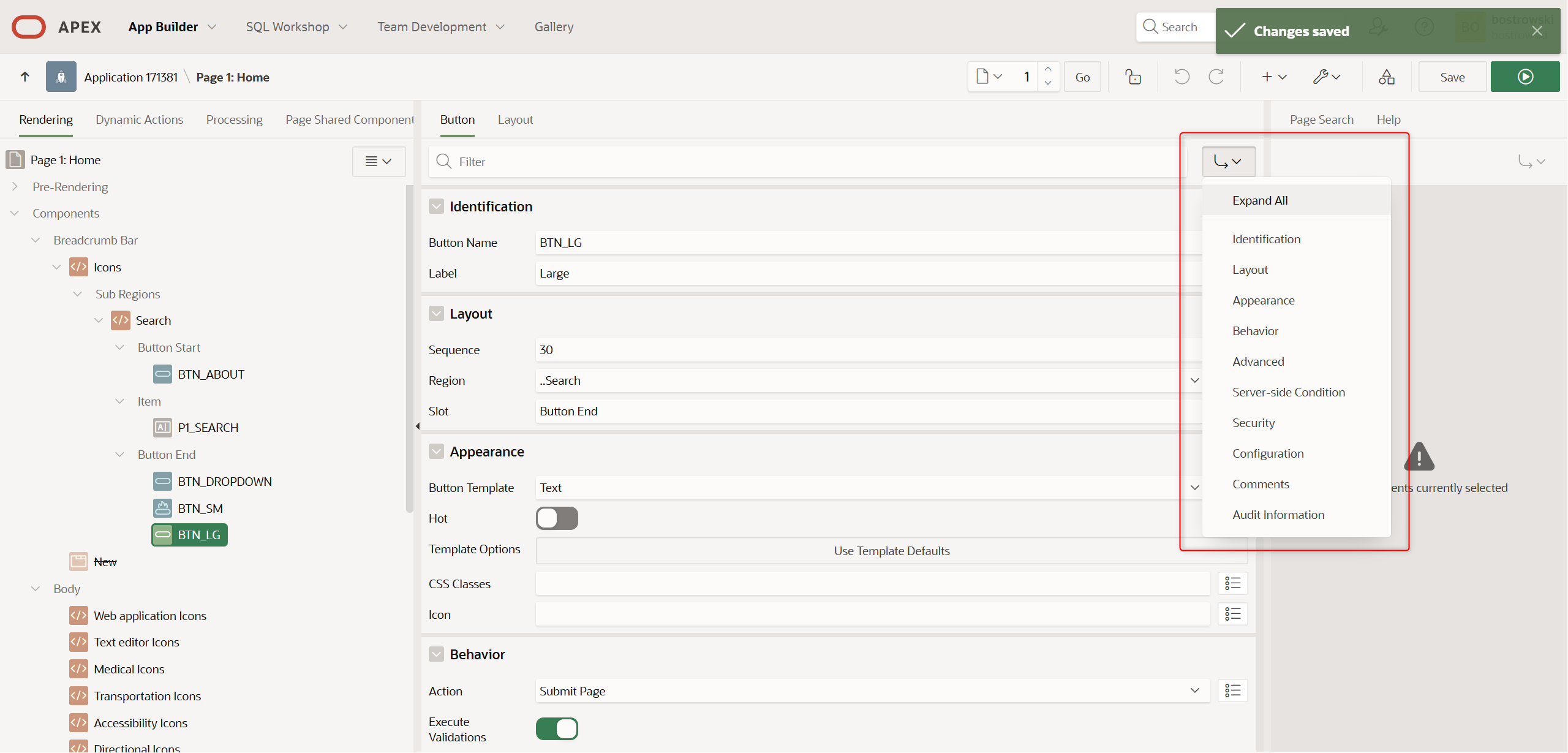 The button after the search field could be a dropdown listing all sections. I checked RDS region, but there are too many icon groups to fit in the breadcrumb region. Icons could be embedded in a collapsible template, so it's easier to to navigate through groups without drop down button.