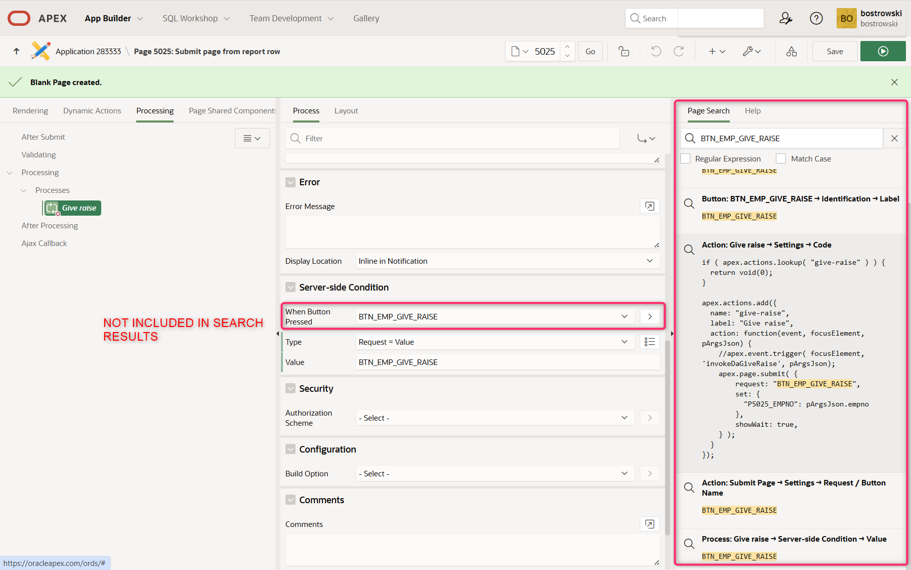 When using Page Designer Search to find a button by name, processes that rely on Server-side Condition → When Button Pressed are currently not included in the results.